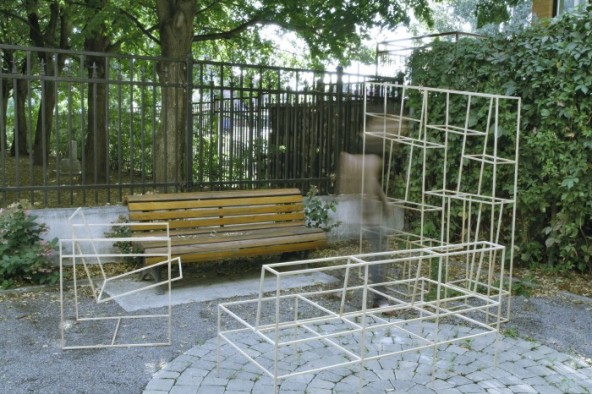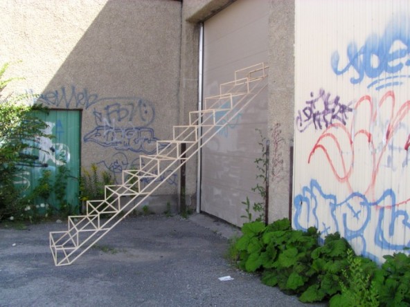 This project centres on the space we inhabit and transform. In this world of levels and lines, I let myself be guided by the functions of our organisation of space. A stranger to this reality, I constantly withdraw from this world that is offered to me. Made out of wooden rods, the installations mimick the nomenclature of architecture and design and lead us to believe in the conception of a detached world like that of a scale model.
