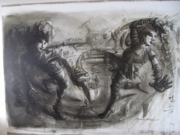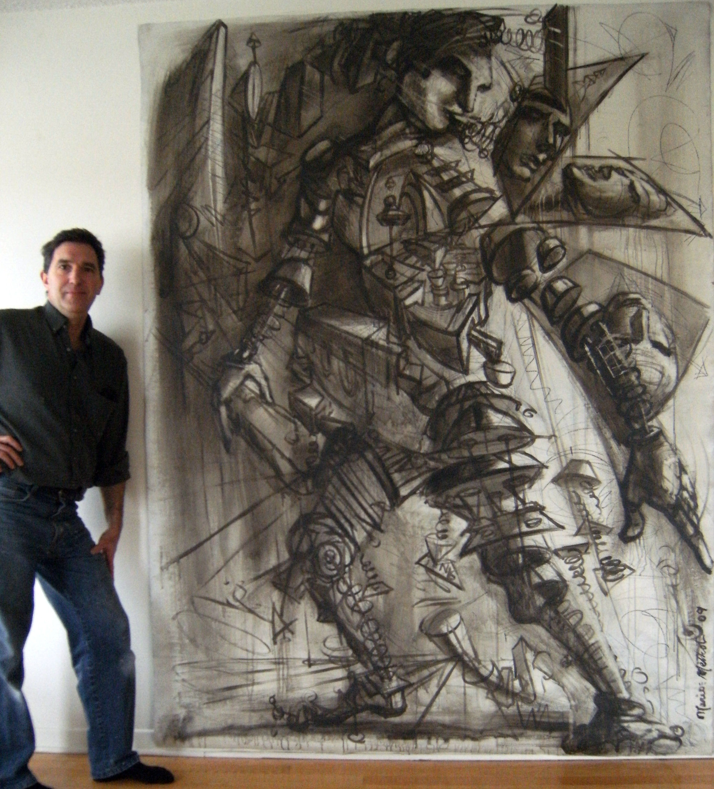 Peinture acrylique sur toile de 60 pouces par 96 pouces.