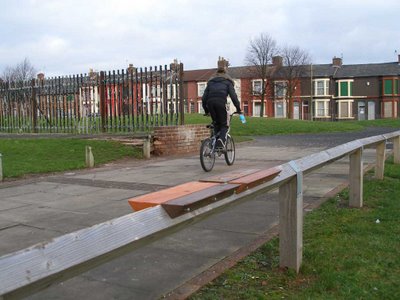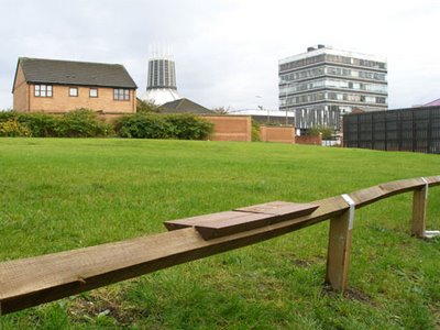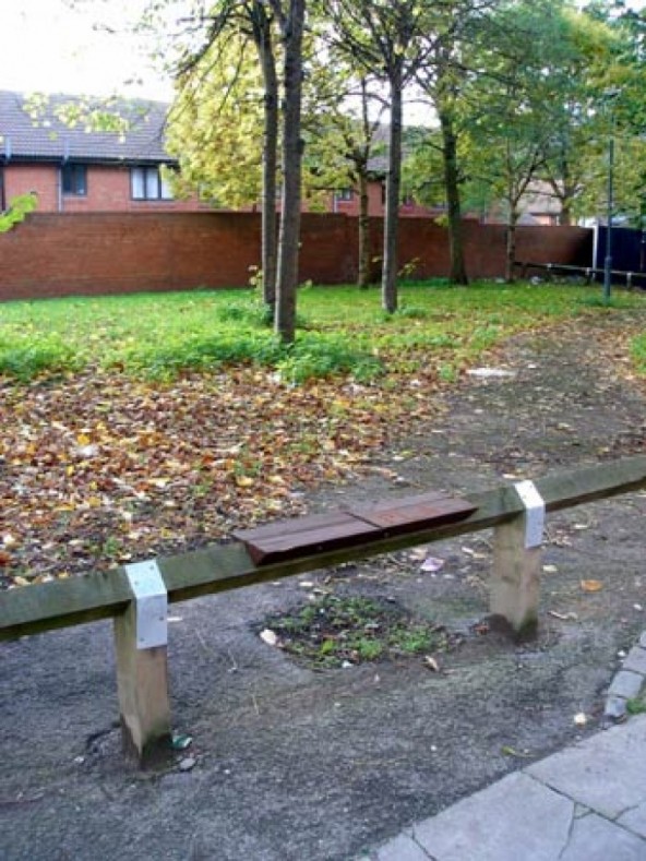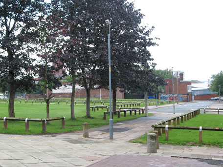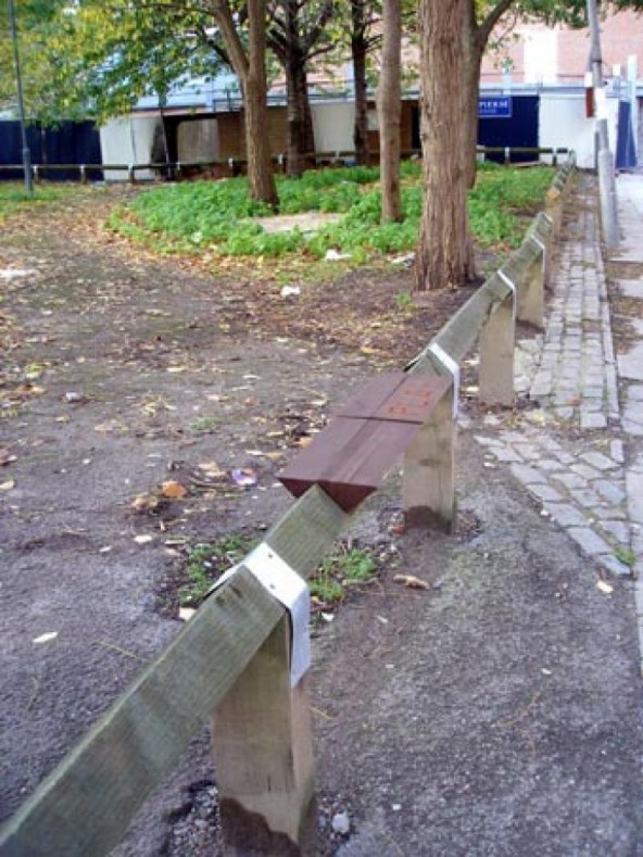 These vacant land-separations in Liverpool reminded me of similar structures in my home town of Montreal surrounding derelict land or parking lots which have also gradually replaced demolished and burnt down industrial buildings. In Montreal, however, these barriers had flat rather then triangular surfaces, offering occasional, informal and unusual seats. Near my loft in an old warehouse district, they often serve as temporary seats in an area where there is very little urban furniture, public parks.