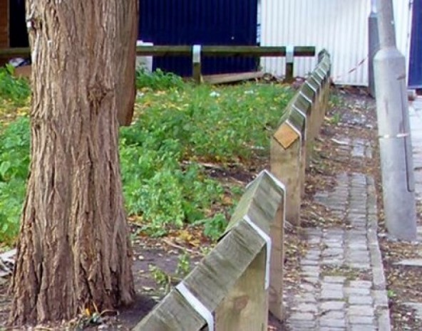 In Liverpool, many common lands, vacant sites demolished by the Second World War or by factory closings, are delimited by identical wooden barriers. These barriers limit access, create boundaries, and suggest that these sites are made to be looked at, but not to be used. While documenting these repetitive elements, I saw some that were burnt, torn apart and sawed, by residents, perhaps to give access or maybe to protest their presence?