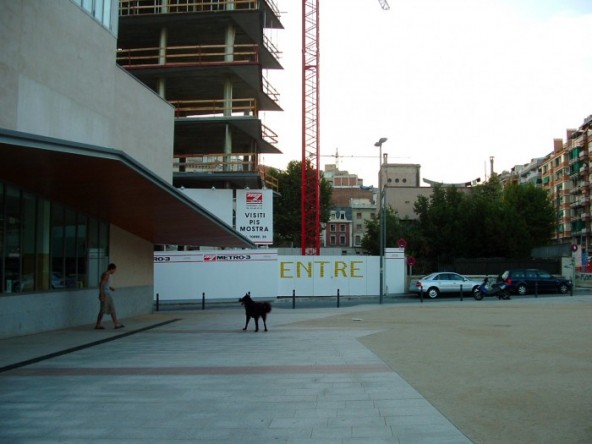 I started this project during my residency at the Darling Foundry in the winter of 2006 in Montreal, Canada. I made 100 anagrams of Danger and I started to installed them in different cities. The rule of the game is to find words that mean something in Spanish, French and eventually in English. The public intervention ENTRE was installed besides the Squat called CASA PLUTO on the fence of a building in construction. That squat was fighting against the police and the law that wanted them out. After a year they were all out and now that area (LESSEPS) has changed a lot. I came back on 2009 and did another public intervention there so you can see the difference.