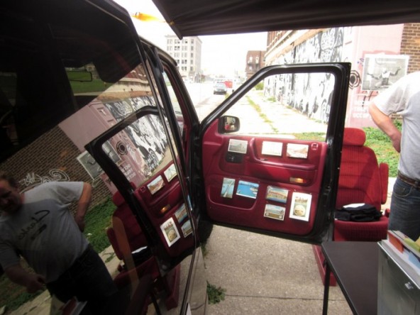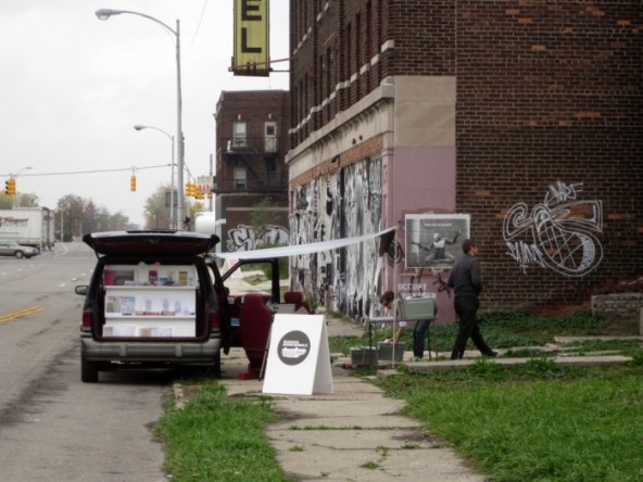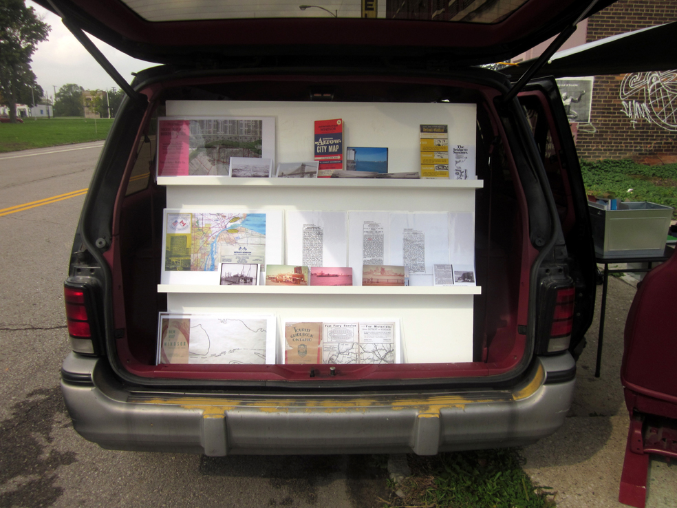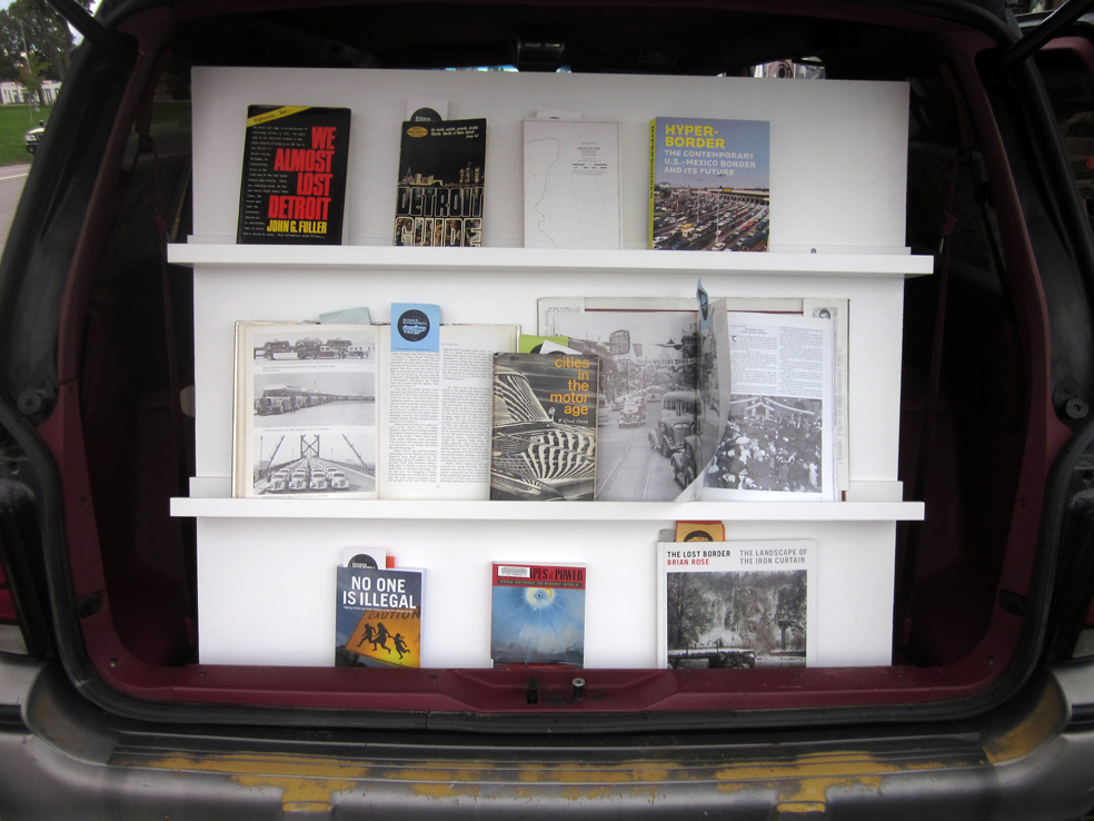 The Border Bookmobile is a research platform and mobile exhibition of books, artist projects, photographs and ephemera about the urban history of the Windsor-Detroit region and other border cities around the world. Read more in View Info + (left side column).