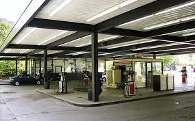 Très modifiée au cours des décennies, la station-service, qui n’était plus exploitée depuis 2008, a bénéficié l’année suivante d’un statut patrimonial, attribué par la Ville de Montréal, et d’un programme de reconversion en « centre communautaire intergénérationnel », lieu de loisirs qui réunit jeunes et moins jeunes de ce quartier très résidentiel (voir une vidéo). L’architecte québécois de la reconversion, Eric Gauthier, n’a pas cherché à reconstruire l’édifice d’origine mais à « radicaliser ses qualités d’unité et de simplicité » pour l’adapter à son nouvel usage : les deux pavillons sont devenus deux boîtes de verre transparentes qui abritent les activités de loisirs, tandis que les nouvelles pompes sont en fait des prises d’air pour la ventilation.