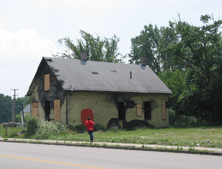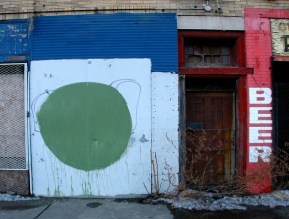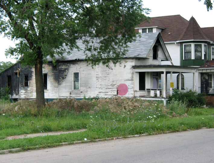 The city of Detroit twice bulldozed (in 1991 and 1999) several Heidelberg houses, including one belonging to the artist. To challenge the sometimes arbitrary, sometimes strategic demolitions, Guyton painted coloured spots throughout the city on homesthat, though uninhabitable, were not slated for destruction. These spots question the logic behind the placing of the numbered Ds for destruction. The artist?s subjective action puts that of the city into perspective, rationalized by so-called safety and health standards. Guyton thus lays bare one of the major factors of uncertainty in the face of municipal decisions and the obstacles to citizens? involvement.