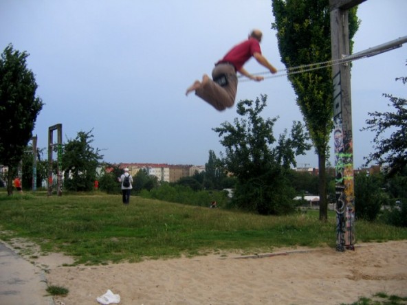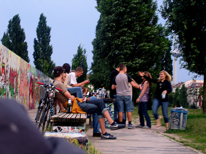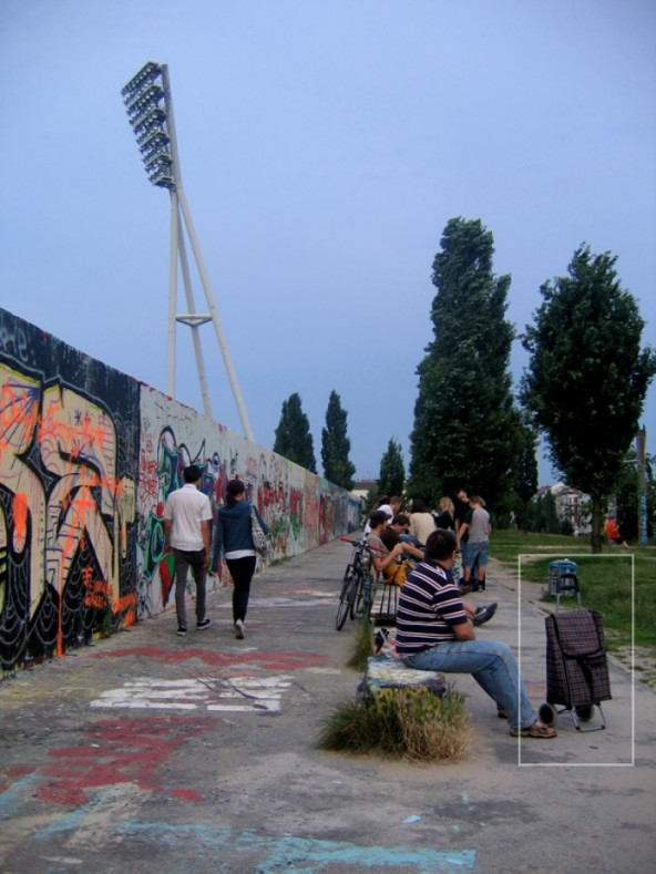 Youth hangout zones, relaxed atmospheres and clandestine bottle recycling in Berlin's Mauerpark (Wall Park). Night-time observations reveal wandering recyclers with mobile luggage taking care of discarded beer bottles. A self-sustained cycle where alcohol drinking in public space is allowed and leaves very little trace. In the Prenzlauerberg area, Berlin.