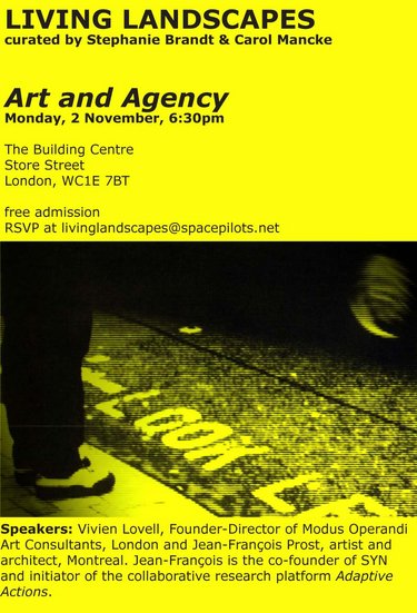 Art and Agency Monday, 2 November, 6:30pm at the Building Centre - London