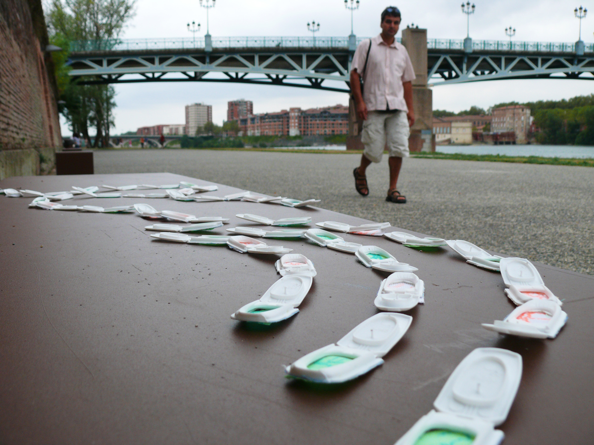 These extremely small containers are displayed in different ways each time, depending on the location, it is a fast ephemeral site-specific intervention which underlines places that I want to connect and work with.